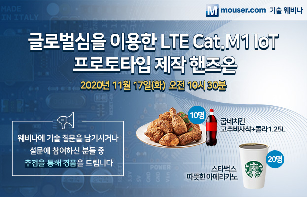 마우저 코리아에서는 엔지니어들을 돕기 위해 정기적으로 온/오프라인 세미나를 진행하고 있으며, 이번 웨비나에서는 글로벌심을 이용한 LTE Cat.M1 IoT 프로토타입 제작 실습에 대해서 공유합니다.