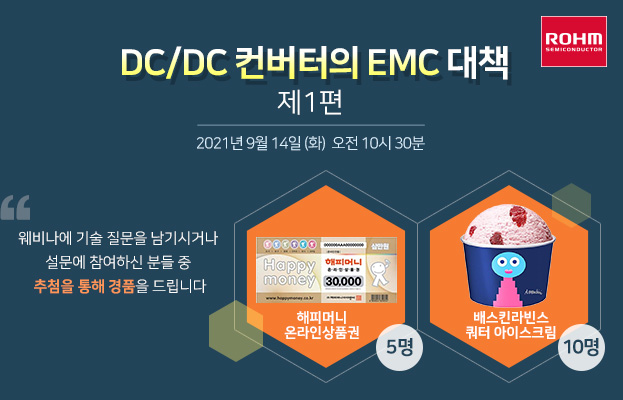 이번 로옴 세미나는 「DC/DC 컨버터의 EMC대책」의 제1편으로, 전원 회로, 특히 DC/DC 컨버터 회로에서 발생되는 EMC의 원인에 대해 알아보고, 이러한 EMC를 해결할 수 있는 방안에 대해 설명하고자 합니다.