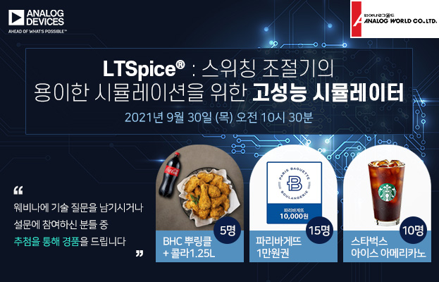이번에 소개 드리는 웨비나는 LTspice 시뮬레이터로 LTspice의 개요/ 회로도 편집기/파형 뷰어 3개의 section으로 구성했습니다.
