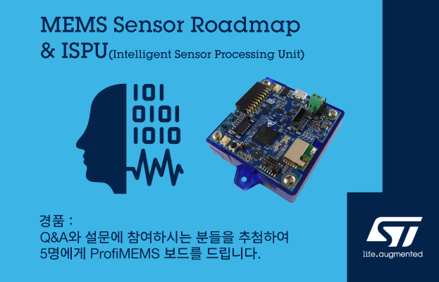 이번 웨비나에서는 ST마이크로일렉트로닉스(STMicroelectronics) MEMS센서 로드맵과 ISPU(Intelligent Sensor Processing Unit)기능에 대해 소개해 드립니다.