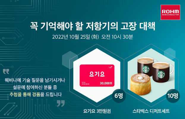 이번 웨비나를 통해 전자 회로에서 가장 기본이 되고, 가장 많이 사용되는 저항기의 고장 모드에 대해 이해할 수 있는 좋은 기회가 되기를 바랍니다.