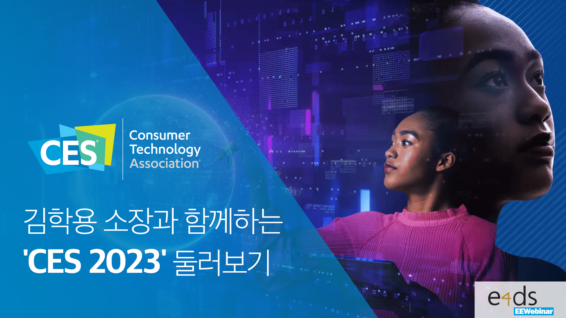 이에 e4ds에서는 이번 CES 2023에 직접 참여해 최신 기술을 살펴본 김학용 디지털비즈니스인사이트연구소 IoT 전략연구소 소장을 초청해 현지에서 직접 살펴본 출품 기술과 컨퍼런스 등을 통해 발표된 최신 기술 동향에 대해 들어보고 향후 전자 산업의 미래에 대해 조망해 보는 자리를 마련했습니다.