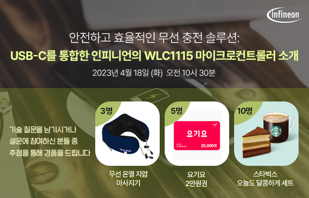 이번 웨비나에서는 인피니언의 안전하고 효율적인 무선 충전 솔루션인 USB-C 통합 WLC1115 마이크로컨트롤러에 대해 소개합니다.