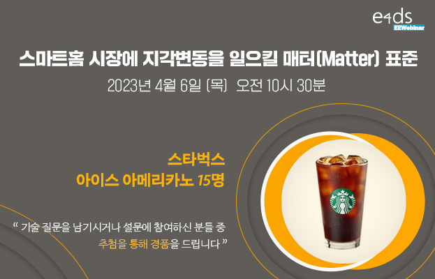 이번 웨비나에서는 새로운 매터 표준의 주요 특징 및 매터 표준이 바꿀 스마트홈 생태계의 변화에 대해 알아보고, 어느 곳에서 새로운 비즈니스 기회가 발생할 지에 대해 다룰 예정입니다.