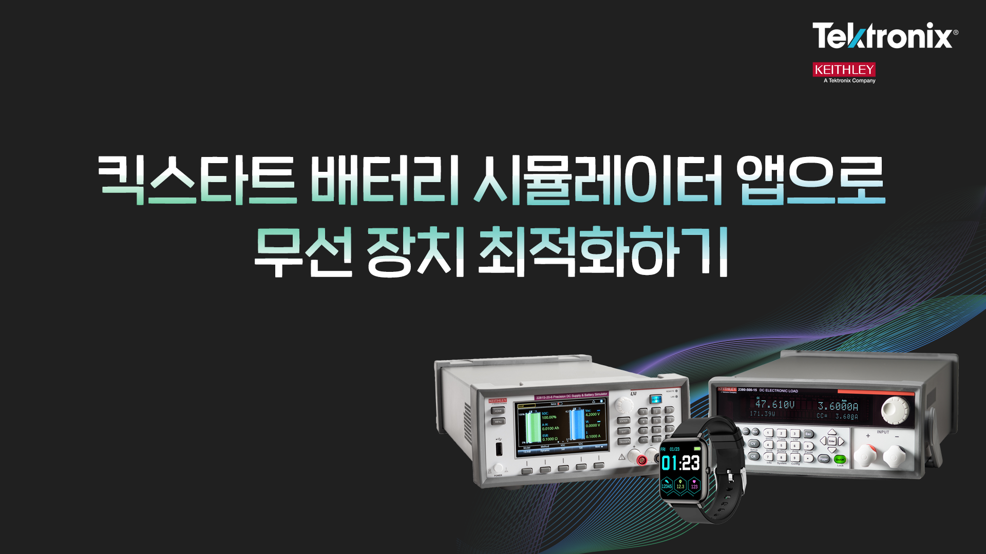 이번 웨비나에서는 스마트 웨어러블 의료기기 등의 배터리 성능 분석이 가능한 Tektronix/Keithley KickStart 소프트웨어의 Battery Simulator App과 2281S 파워서플라이 그리고 2380 전자부하기 기능을 소개합니다.