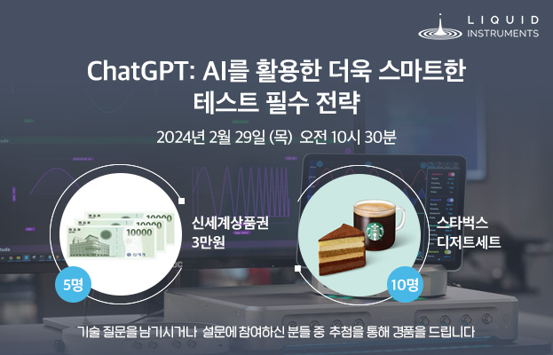 이번 웨비나에서는 Liquid Instruments의 Moku Cloud Compile과 전 세계를 휩쓸고있는 고급 AI 언어모델 ChatGPT를 활용하여 테스트 절차를 가속화하는 유용한 팁과 노하우를 소개합니다.