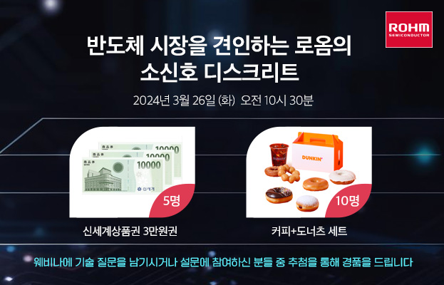 이번 웨비나에서는 소신호 디스크리트의 제품 트렌드를 소개하고, 시장 요구를 반영하는 로옴의 소신호 디스크리트 사업 전략부터, 다이오드 및 트랜지스터의 제품 체계 등에 대해 알기 쉽게 설명할 예정입니다.