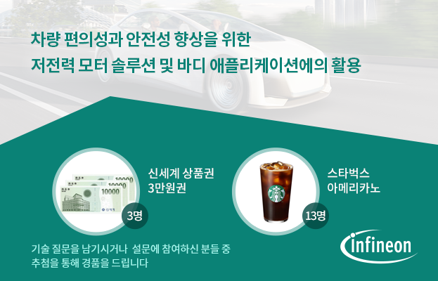 차량용 저전력 모터에 관심이 있으시거나 개발을 앞두고 있는 분들께 인피니언 제품 선택에 대한 가이드를 제공하고, 모터 개발에 도움이 될 수 있는 정보를 소개하고자 하오니 관심 있으신 분들의 많은 참석 부탁 드립니다.